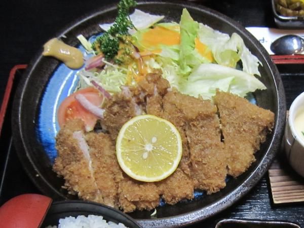 とんかつ定食。大きな豚肉のカツで、衣がちょうどいい厚さでサクサク、お肉ジューシーで美味しい~。こちらにも、同じく大盛りご飯、茶碗蒸し、お新香、お味噌汁がついています。
