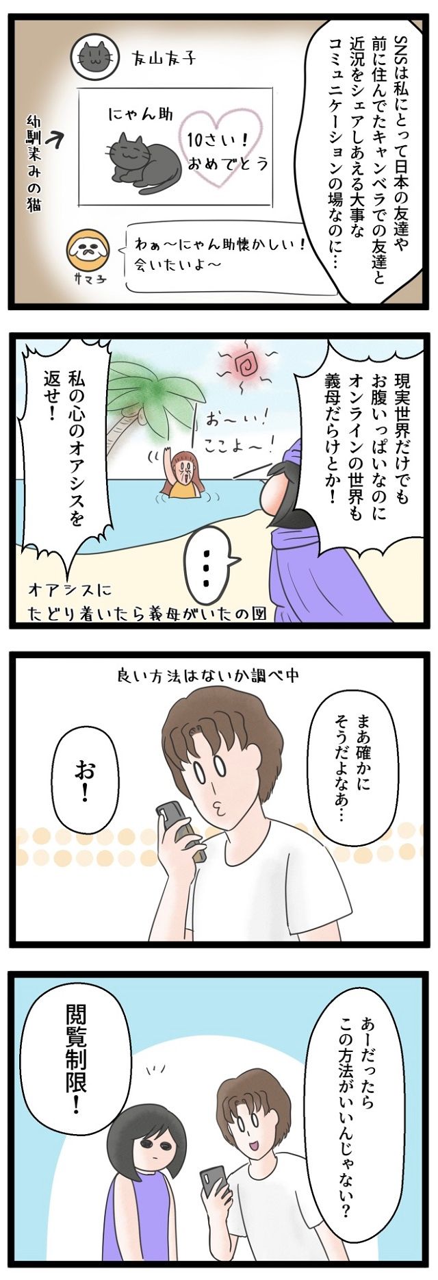 [12-2]落ち込む妻に『閲覧制限』を推す夫。めんどくさ!義母のSNSが嫌すぎる|サマ子の海外ママじゃーなる in オーストラリア