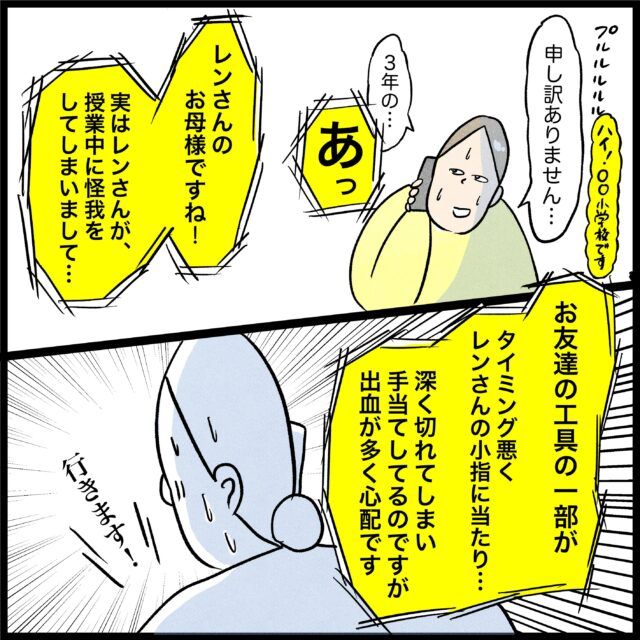 3. [1]「傷が深くて出血が多い」学校から呼び出しの電話に焦りと不安・・。子どもが大怪我!どうしよう!|はんままの子育て絵日記