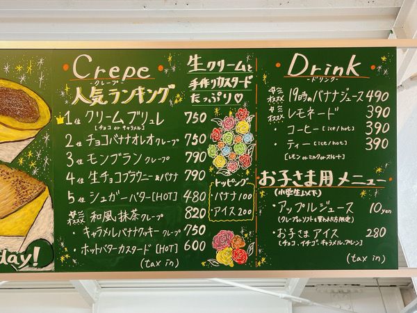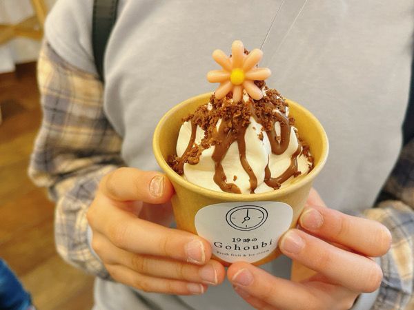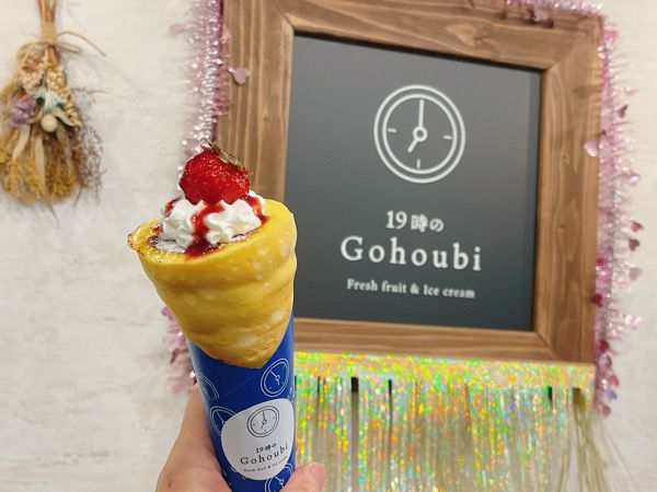 メニューはクレープとソフトクリームがメイン。季節のフルーツを使った季節限定メニューもあります。 19時のGohoubiさんは4店舗ありますが、材料は独自に仕入れられているそうで、仕入れ時に1番おいしいものを選んでるんだとか。
