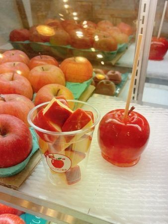 最近はクレープやソフトクリームに加え、りんご飴の販売も始まったそうです!