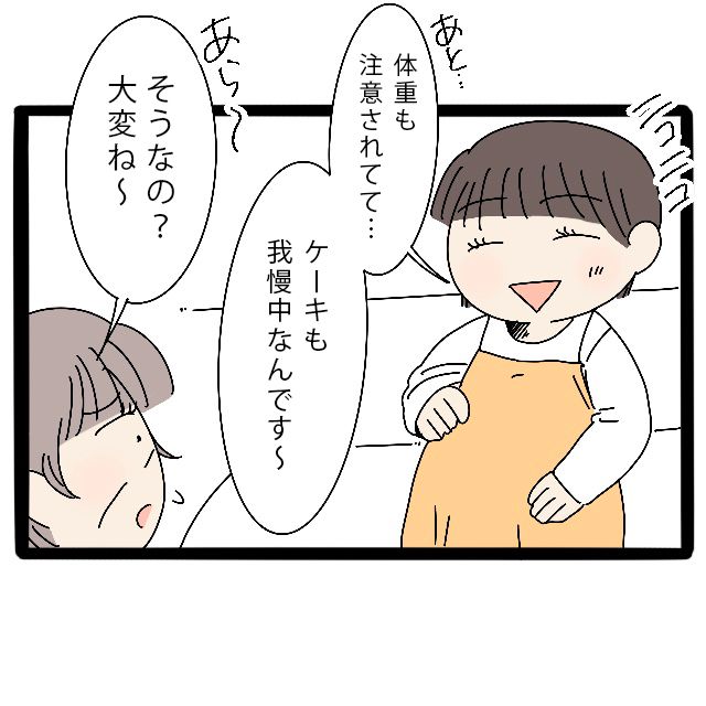 「あと体重も注意されてて・・・ケーキも我慢中なんです~」