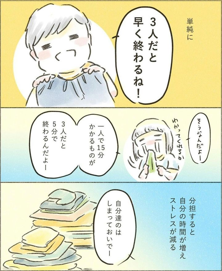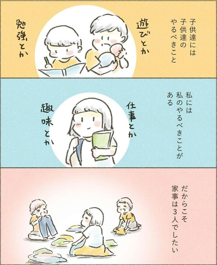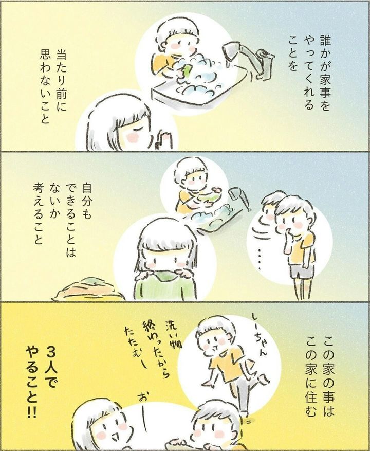 さらに仕事も家事も1人ですべて行うことに違和感を持ち、「家族のことなのだから家族みんなで行うのが一番良い」と思ったことで「やらせないとやる未来はやってこない」との考えのもと、日々子どもたちもお手伝いをしているようです。