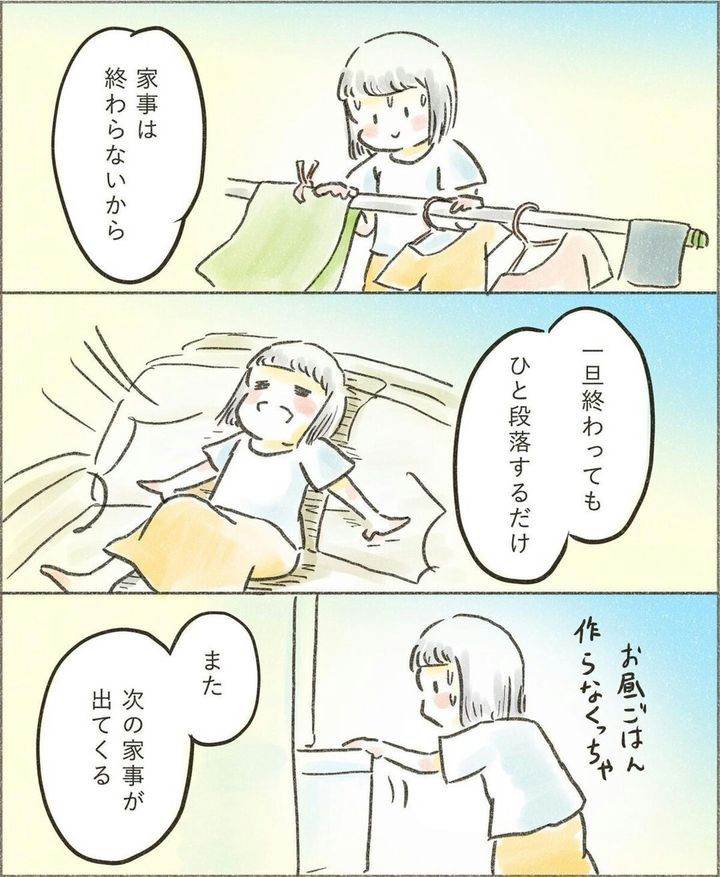 このお話の主人公・せせらぎさんは、夫との死別を経験しています。命あるものとの別れはいつ訪れるかわからない、ということを切に感じているからこそ、「もしも自分がいなくなっても、子どもたちが生活に困らないように」と小さいころから家事を教えているのだそう。