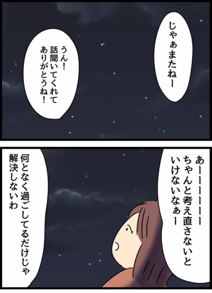 友人の言葉に自分の今までの行動や言葉を反省したエムコ。そして、この問題を解決するには話し愛を避けることはできないと実感したようです。エムコとエスオ君、それぞれが自分の悪かったところを反省し、相手と話し合おうと考えることができました。