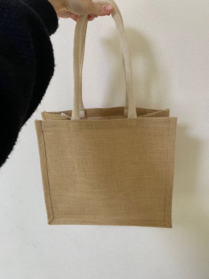 じゃじゃん!こちらが無印良品のジュートバッグ。そのままでもシンプルおしゃれ。