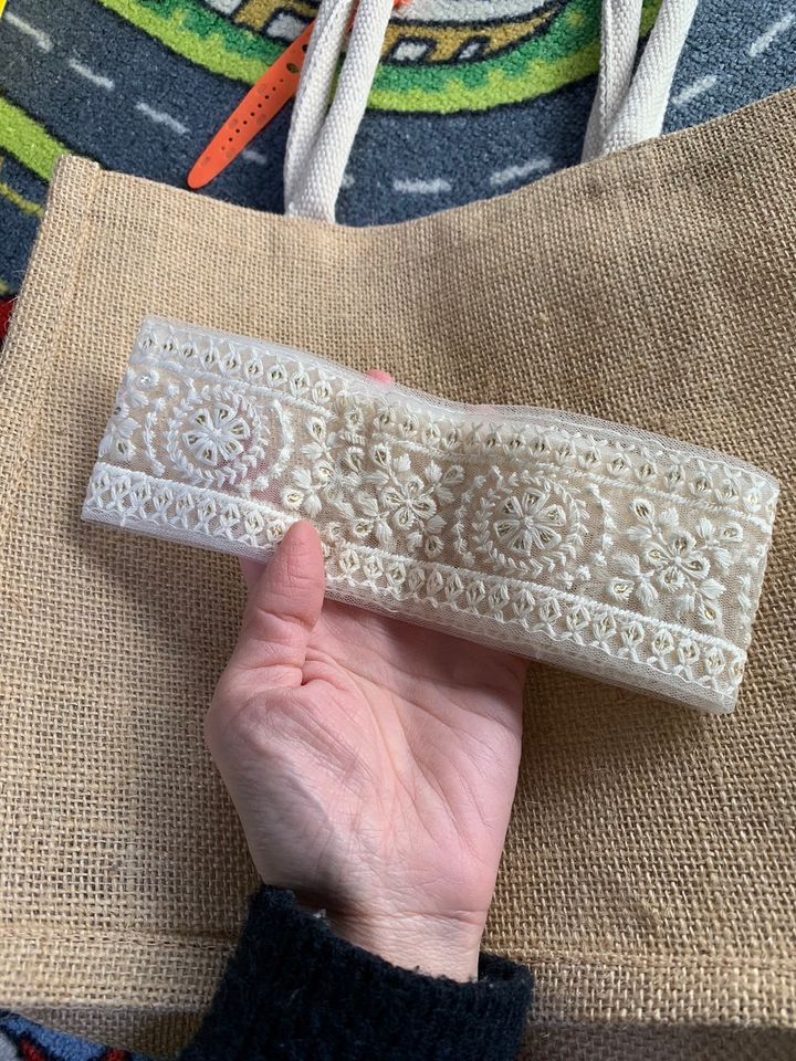 好みのインド刺繍リボンをインターネットで購入。