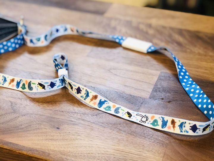海遊館のいきものをモチーフとした、とってもかわいいネックストラップ(長さ調整機能つき)がついています。