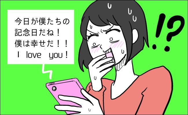 彼を見送ったその夜。彼から届いたメールには「今日が僕たちの記念日だね、僕は今幸せだ、愛してる!」という言葉が。