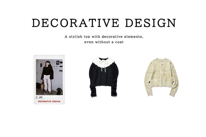 気温によってはコートを脱ぐ日もちらほら。そんなとき、コートを脱いでもコーディネートが“もつ”「主役級のデザイン」をご用意。コートありでも・コートなしでも、さらにワン・ツーコーディネートでも絵になる見え隠れ前提で取り入れるニットを厳選。