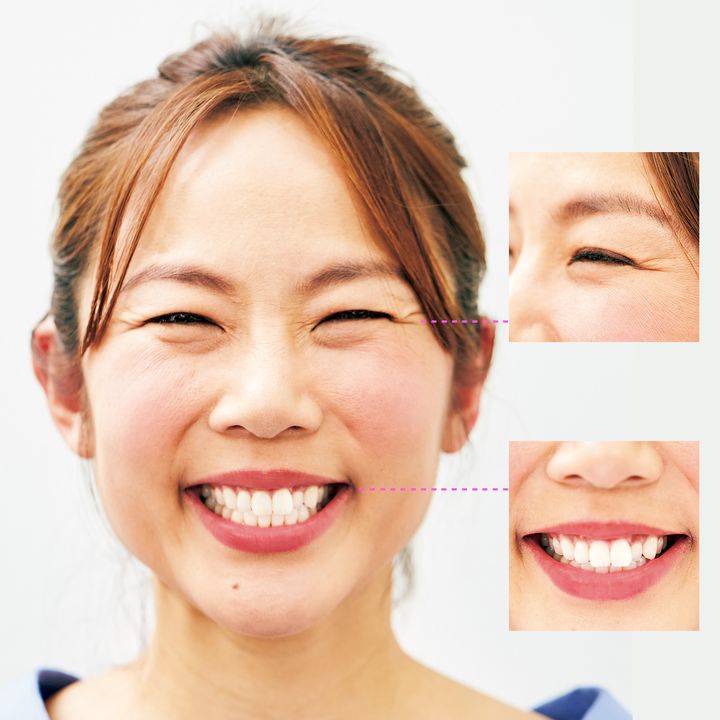女性からは特に「思いきり笑うとシワが気になる」という声を聞きますが、笑った時に生じるシワは、実は他人はそこまで気にしていません。ステキな笑顔とは、目が細くなって、目尻にきちんとシワができ、頰筋の力こぶが現れる「笑顔マッチョ」な状態を指します。決して、ただ整ったキレイな笑顔ではないんですよね。