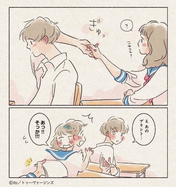 同じクラスの前後の席になったことがきっかけで、少しずつ距離を縮め、はじめての彼女/彼氏の関係になった荻野美穂と村田くんの恋の行方を描く『きらきら、あおい』が大バズり中のitoさん。 主人公と同じ世代はもちろん、初恋から遠くなった大人たちの心もくすぐる繊細な作品だ。