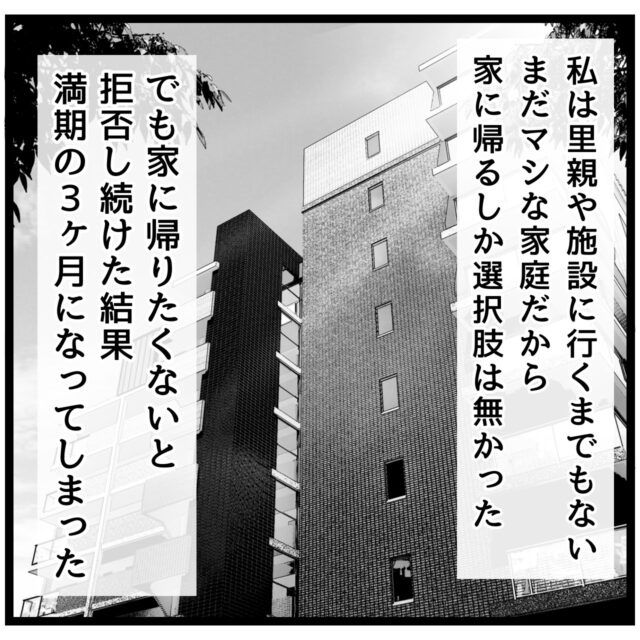 家に帰りたくなかった樹里ちゃんは帰宅をずっと拒み続けているうちに満期の3ヶ月になりました。