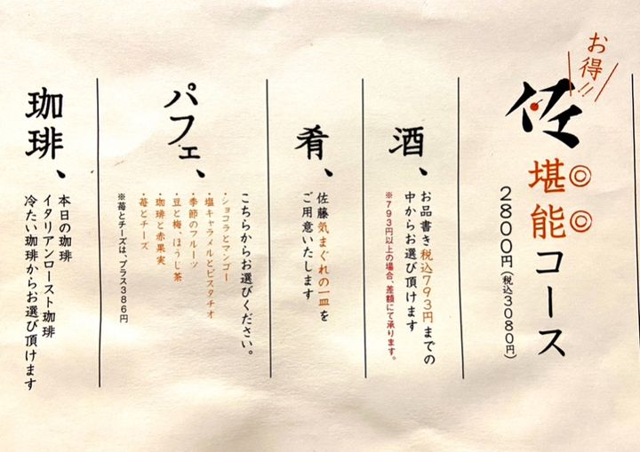 「堪能コース」という、パフェをお酒やおつまみ、珈琲と一緒に楽しむフルコースメニューがあるからなのです!