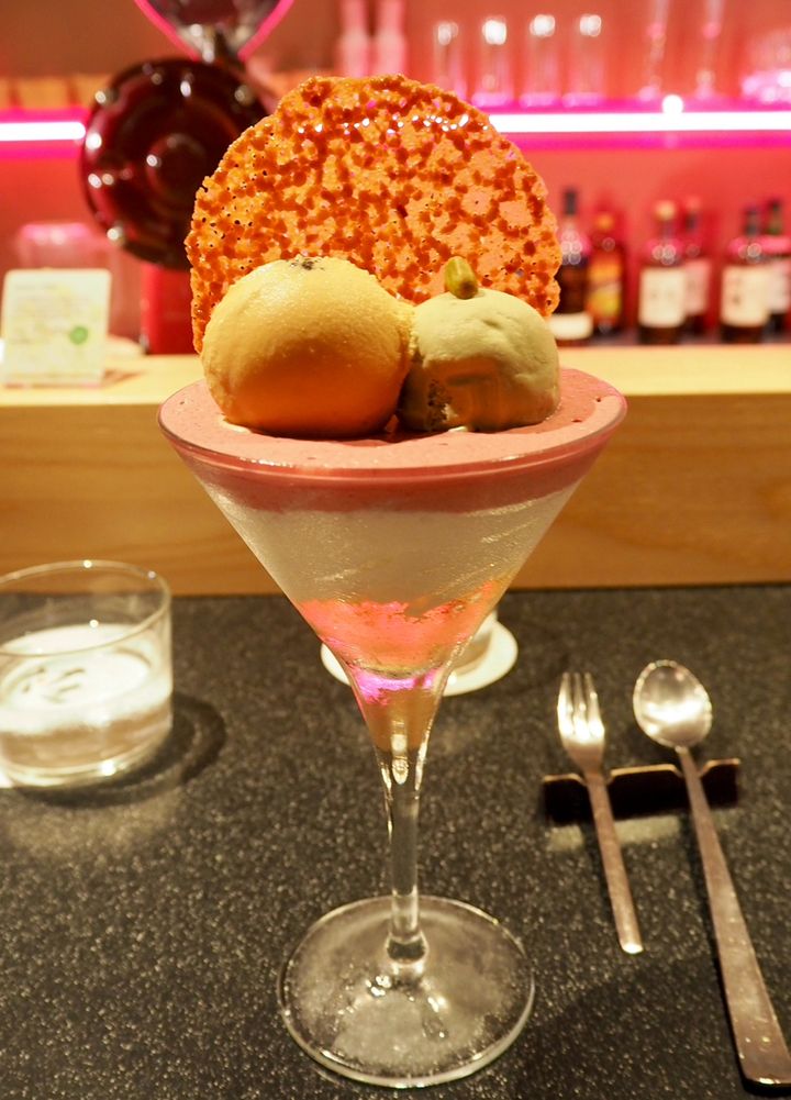 こちらのパフェはアイスとカシスムースや林檎ジュレなどで構成されている為、重くなくさっぱりと後味の良い一品でした!