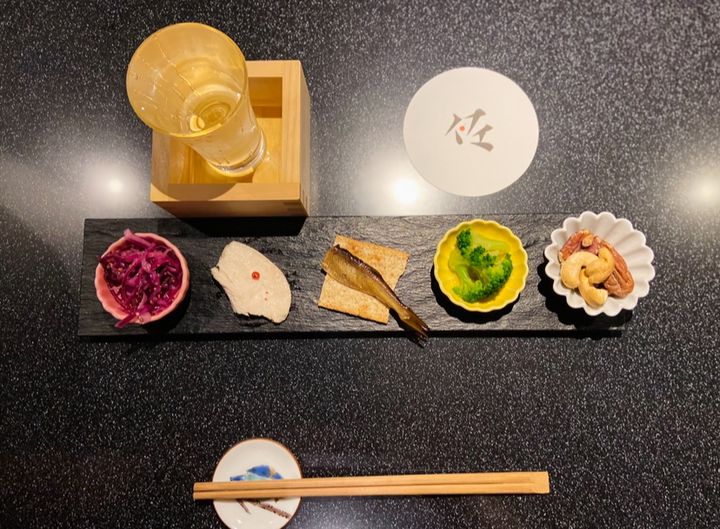 まずコースの始めに運ばれてきたのが「酒」と「肴」。小皿に美しく盛り付けられたおつまみのセットに、最初からテンションが上がります✨