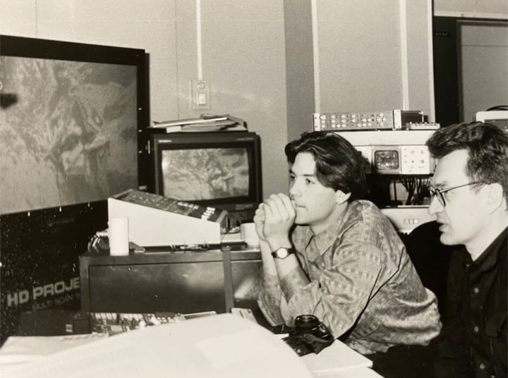 NHK編集室で「夢のシークエンス」を制作するヴィム・ヴェンダースとショーン・ノートン1991 撮影:御影雅良