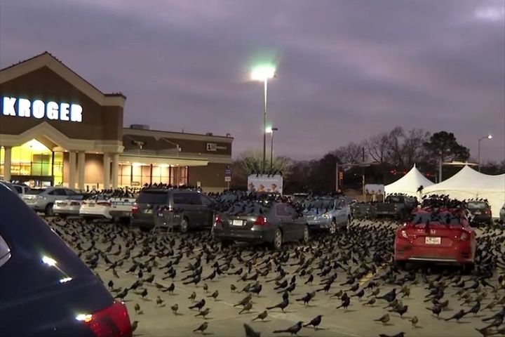 3. おいおいこの世の終わりかよ・・・大量の黒い鳥がスーパーの駐車場を占拠!世にも恐ろしい光景が話題に