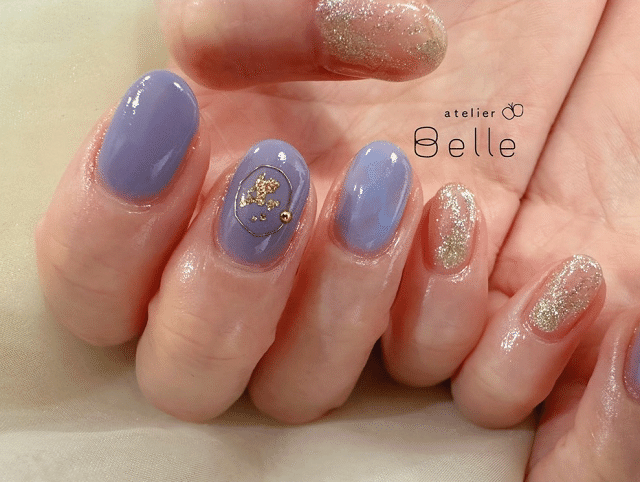 淡めカラーに乗せたゴールドパーツや、ラメカラーの指先とも相性抜群!