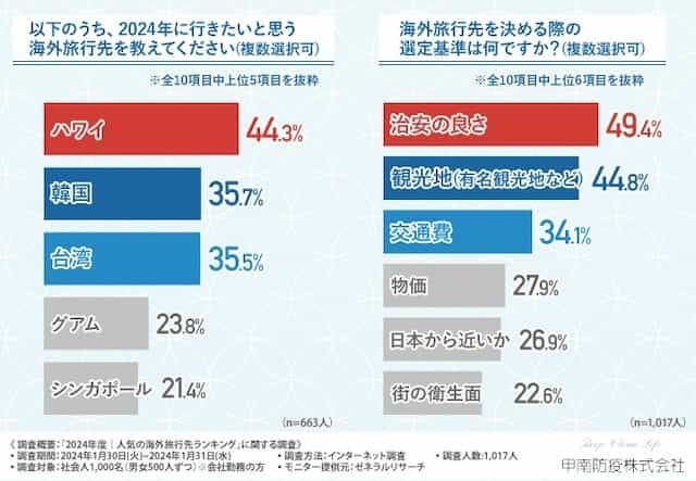 「2024年度|人気の海外旅行先ランキング」に関する調査