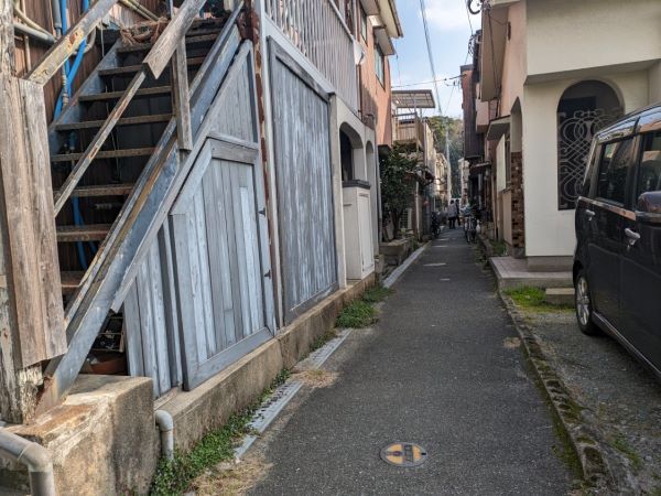 閑静な地区として知られる、通称”ウラ六本松”にMEDETAIYA 六本松はあります。車道には面していないので、車で通るとなかなか気づきにくいかなと思いますが、是非上の写真の看板を見つけてくださいね!(詳しい場所はインスタにも載っています)その看板のところから、下の写真で見える小道を入っていきましょう。私有地のような感じで、ちょっとドキドキしましたが、入らないことには辿り着きませんよ(笑)。