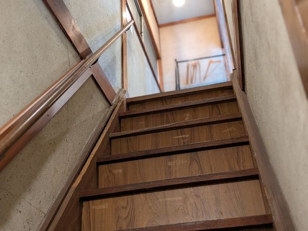 2階もカフェスペースになっているので、階段を下から見てみたら、祖父母の家もこんな感じだった~と、急でちょっと危険な(笑)階段に、またまた懐かしさを覚えました。