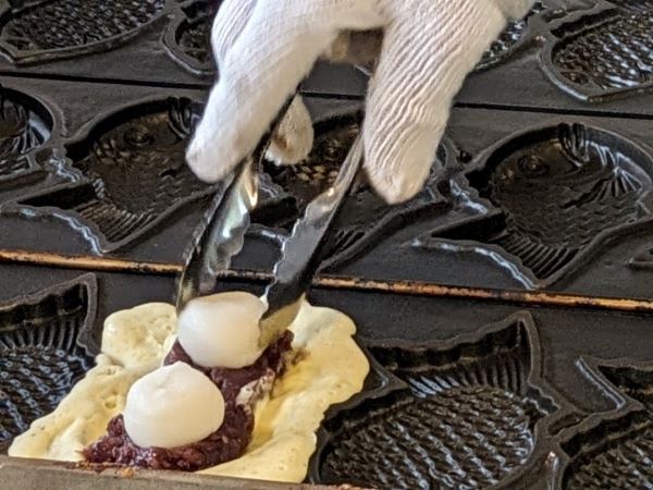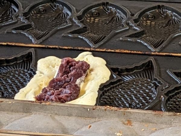 とっても迷ったのですが、オーナーさんがお店を開くきっかけにもなったのが「あんこ」ということだったので、そのあんこに期間限定の白玉が入った「あんこ白玉」に決めました。(3月までの予定ですが、人気なので定番化するかもとのことです) 注文してから焼くスタイルなので、お話をしながら焼きあがりを待ちます。東京で同じくタイヤキカフェをされているお母様とお姉さまのお店を手伝った際、甘いものが得意じゃないオーナーさんは、タイヤキに興味がありませんでした。でも「一口食べてみたら?」のお声に後押しされて食べてみたら「あれ?タイヤキってこんなにおいしかったんだ!」と思ったことから、ご自分も福岡でタイヤキのお店を開きたいと思い、2年前にオープンしました。オーナーさんを虜にしたあんこは、甘さが控えめで小豆の香りがしっかりとしているそうです。