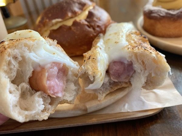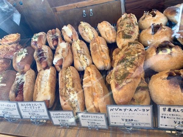 こちらにはフランスパンにソーセージやグラタンをサンドした惣菜パンがずらり。手に取りやすいお手頃価格で、たくさん食べたくなっちゃいます。