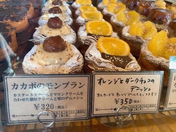 「カカポのモンブラン」「オレンジとダークチョコのデニッシュ」