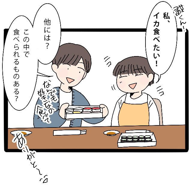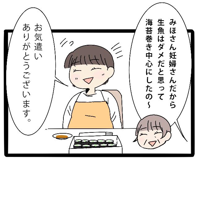 「みほさんは妊婦さんだから、生魚はダメだと思って海苔巻き中心にしたの~」
