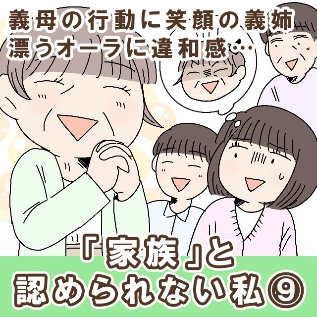 [9-1]義母の行動に笑顔の義姉。漂うオーラに違和感「家族」と認められない私|ママ広場マンガ