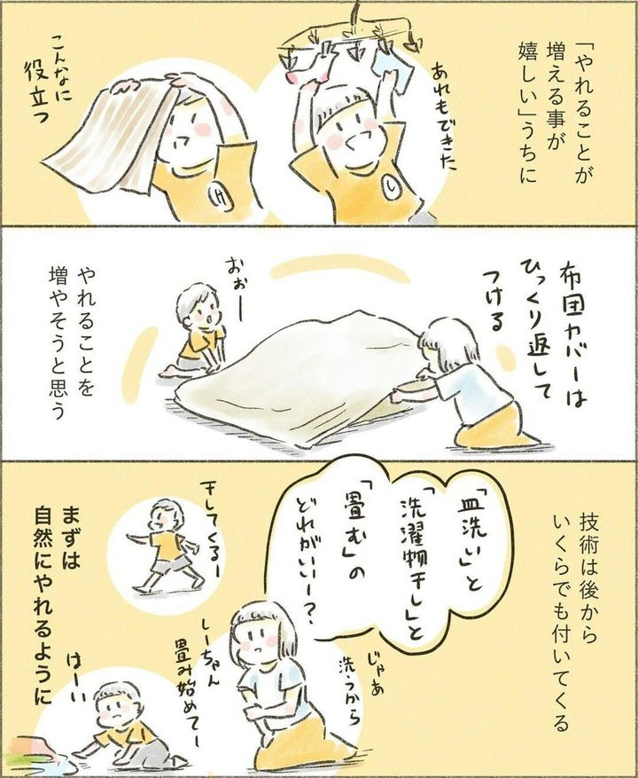 技術は後からついてくるため、まずは家事をするクセづけが大事なのだそう。そして「やれることが増えてうれしい」と思う成功体験がどんどんプラスに働いていくのですね。