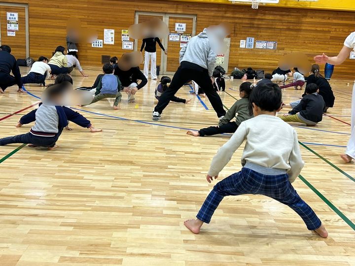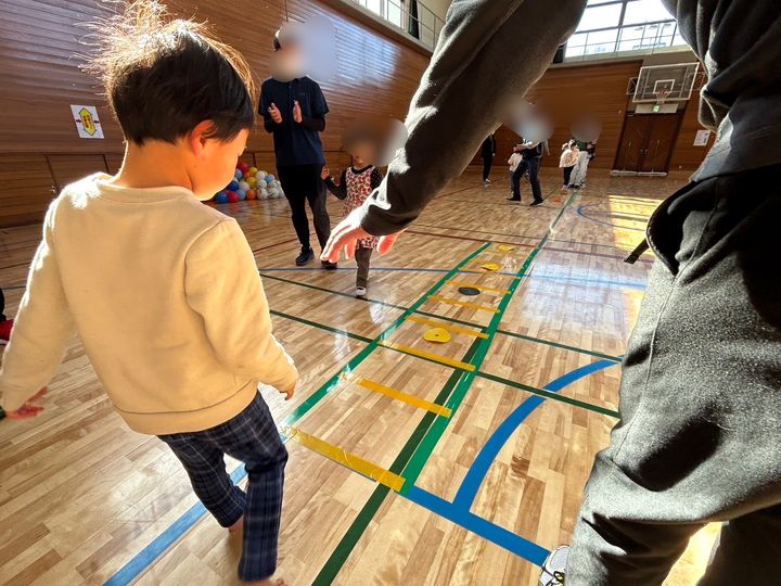 今回の一番の目的だった「子どもの運動教室」。ドイツ発祥のコーディネーショントレーニングを体験しました。