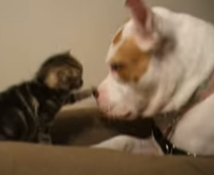 3. てちてちてち!子猫のかまって攻撃に答えてあげる、優しい犬