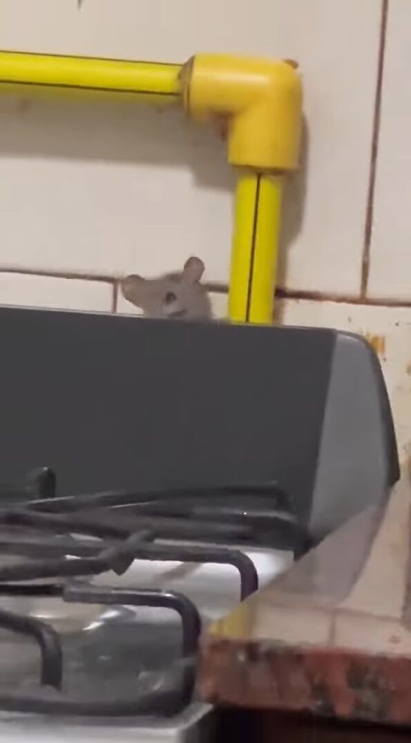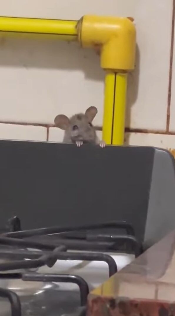 3. ひょこっと顔を出すかわいいネズミ。だけどその場所はよりによって・・【海外・動画】