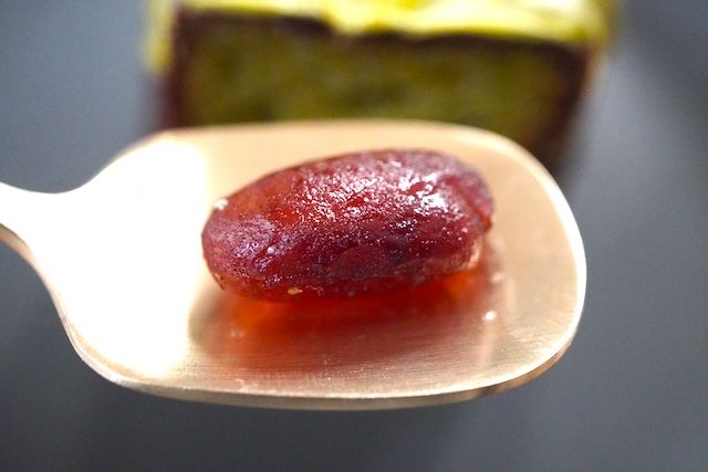 一口食べてみると、上の方はコーティングのせいかカリッとした食感を楽しめます。下の方は生地の表面も柔らかい食感に感じました。中の生地は水分が多くねっちりとしています。抹茶のほろ苦さの加わった甘さは透明感があり重さを感じません。この大きさはちょうどいいかも!
