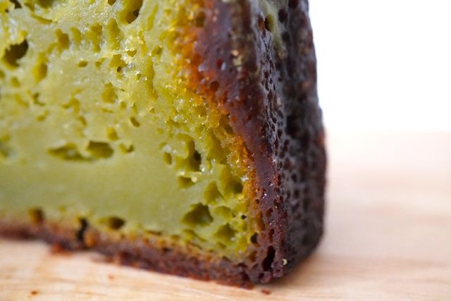 カヌレをカットしてみると上の方はカリッとした感触が刃から伝わってきました。断面は外からは想像がつかないほど綺麗なグリーンです。