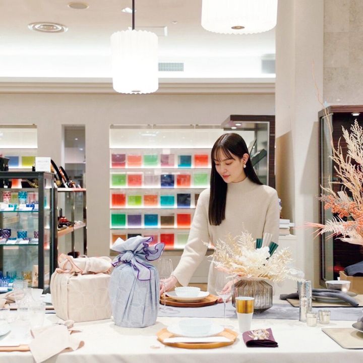 母が習っていたのがきっかけで、私も仕事をしながらフラワーアレンジメントとテーブルコーディネートを習い始めました。季節や旬、 催しによって様々なアレンジがあり、できることが増えていくのが楽しいんです。年末には「eterble」というブランドのリネンアイテム のテーブルコーディネートを担当しました。