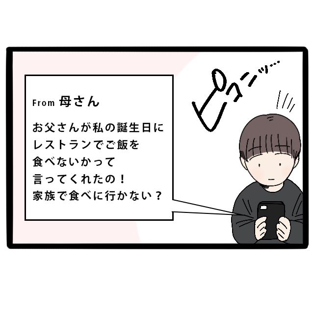 「お父さんが、私の誕生日にレストランでご飯を食べないかって言ってくれたの!家族で食べに行かない?」