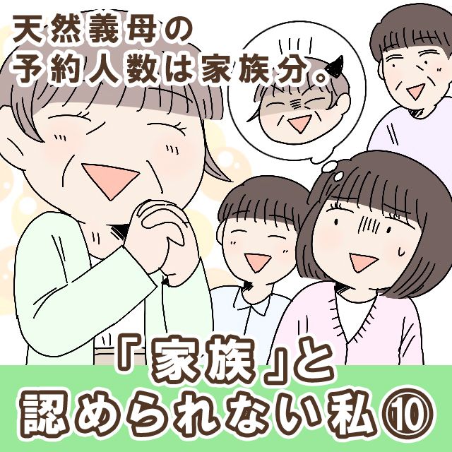 [10ー1]天然義母の予約人数は家族分。焦ってる義母の姿は演技?「家族」と認められない私|ママ広場マンガ