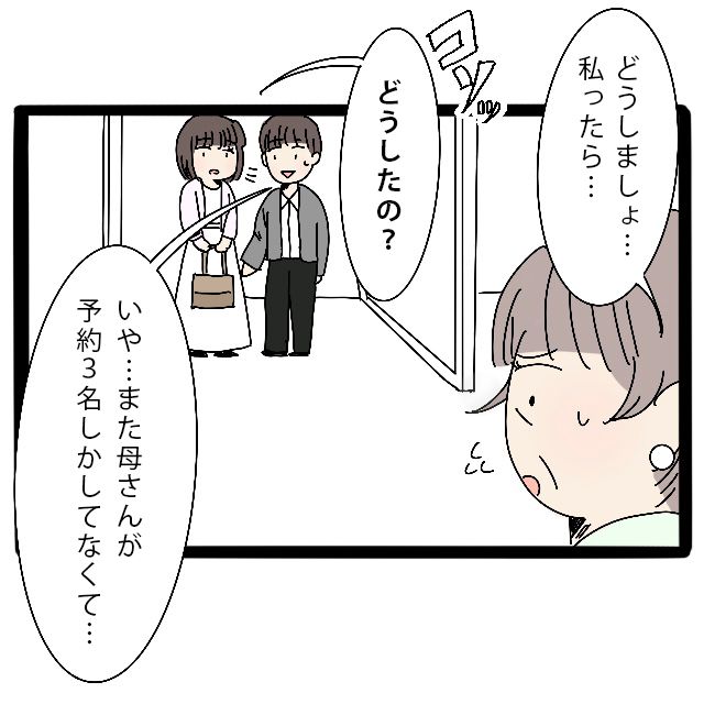 3. [10ー1]天然義母の予約人数は家族分。焦ってる義母の姿は演技?「家族」と認められない私|ママ広場マンガ