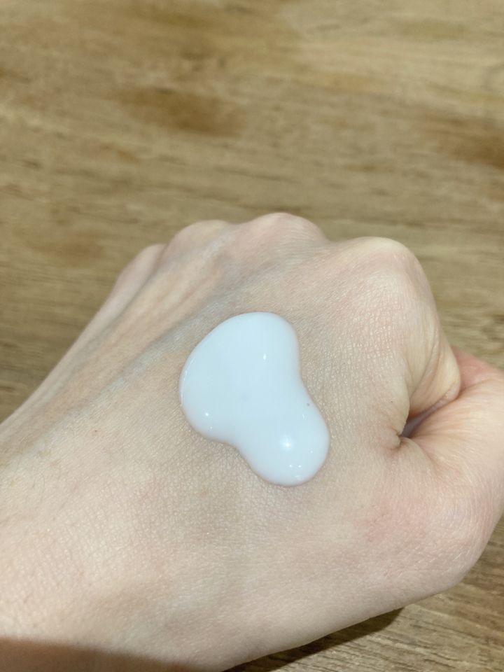 これくらいの少量で全顔カバーできちゃいます。乾燥気味なときは量を増やして調整しても。
