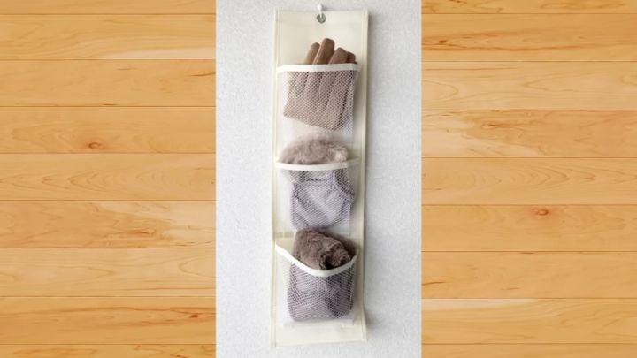 壁に掛けて収納できる、サイズ16cm×57.5cmのウォールポケット。メッシュなので通気性もバツグンです!