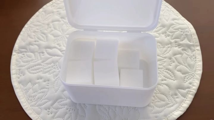 中身が見えないためサニタリー用品はもちろん、メラミンスポンジや洗面台に使用する小物のストック、ポケットティッシュの収納にも活用できます。フタがついているので、衛生面も安心ですね♪