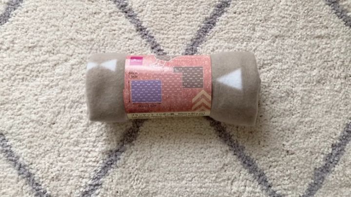 まさかの100円という衝撃価格のブランケット。サイズは60cm×80cmで、かわいいリボンのデザインが特徴です。