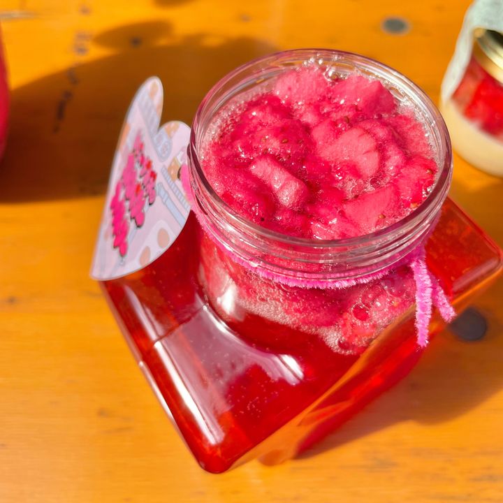 ぷるっぷるの冷たいゼリーに包まれたいちごの果肉