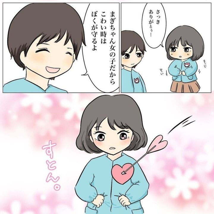 まぎさんのは初恋は幼稚園のころでした。節分のイベントで幼稚園にこわい鬼がやってきます。こわくてたまらないまぎさんは教室の端っこで泣いていました。