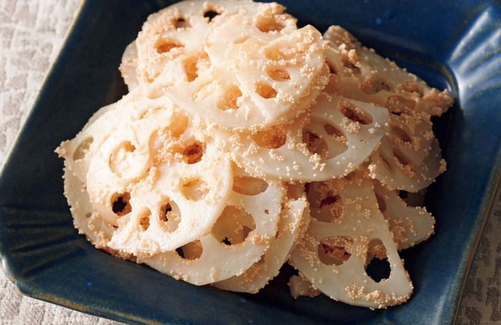 れんこんのシャキシャキと明太子のプチプチが相性抜群。レモン汁を加えると洗練された味わいに。