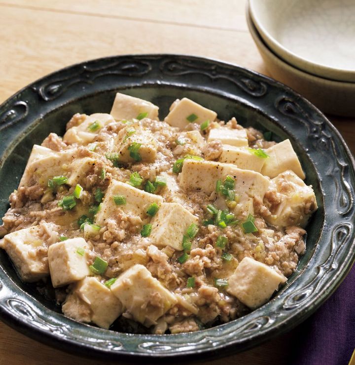 3. さっぱり塩味でも満足感大!『まいたけと鶏ひき肉の白い麻婆豆腐』のレシピ