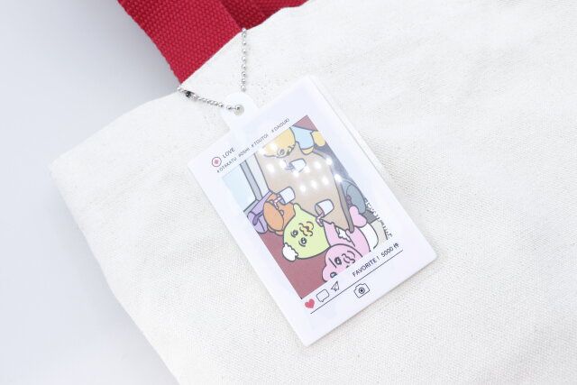 「SNS風硬質チェキ用ケースキーホルダー 2P」は通し穴とチェーン付きなので、バッグの持ち手などに付けて使うことできますよ。